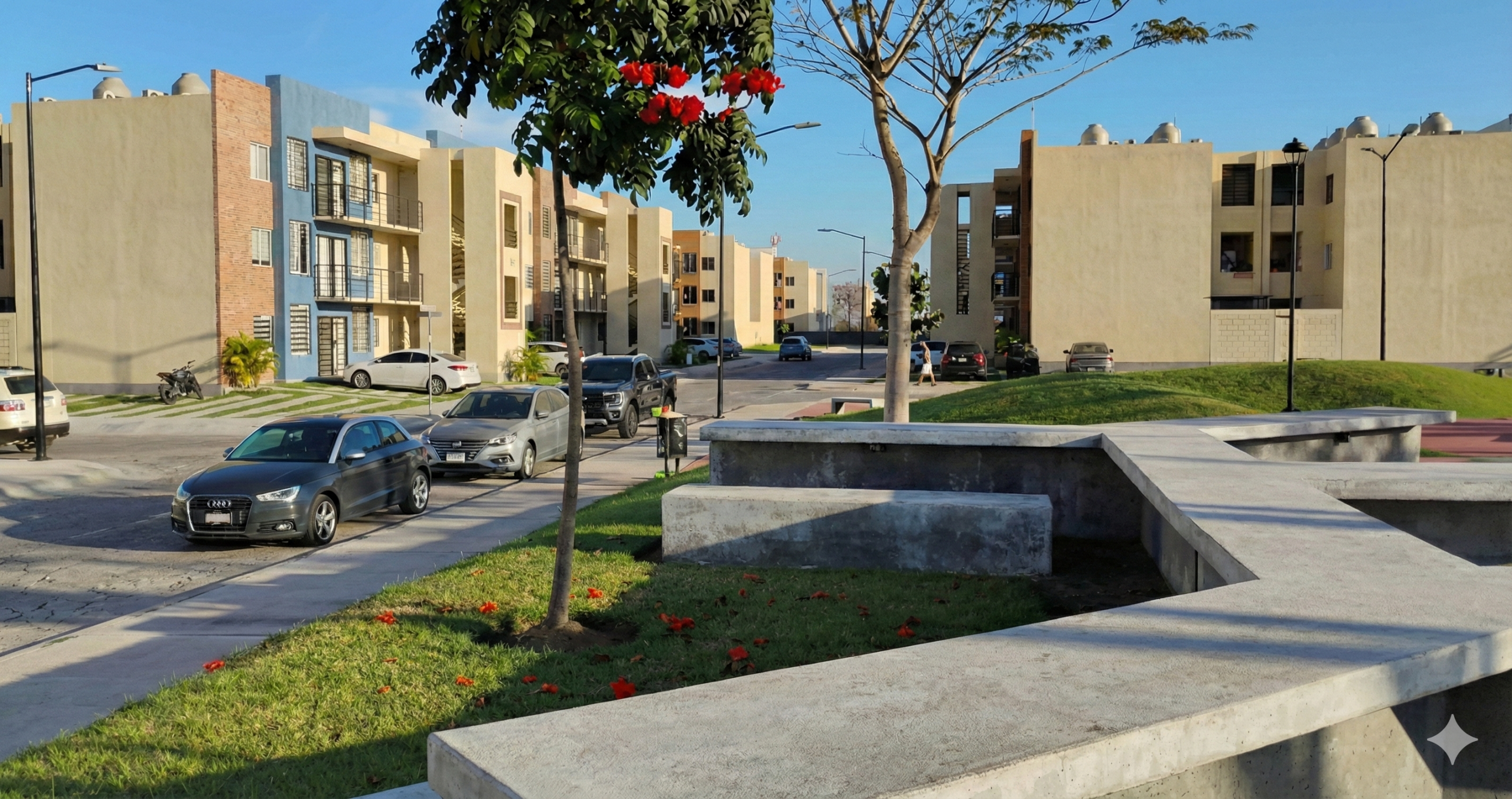 Un entorno al aire libre con wifi, mobiliario y áreas verdes, pensado para trabajar, estudiar o convivir con comodidad.